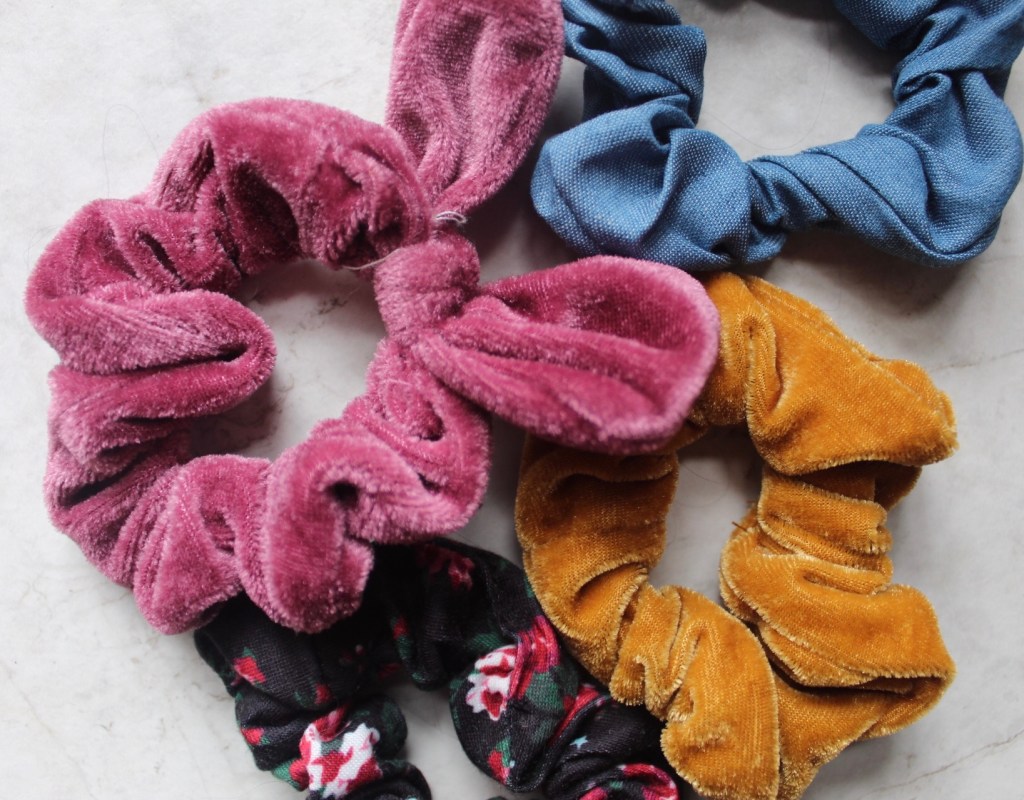 Who else grew up making scrunchies? No? Just me? Well, I love the scrunchie trend, specifically the velvet ones. I got all of my scrunchies at five and below.