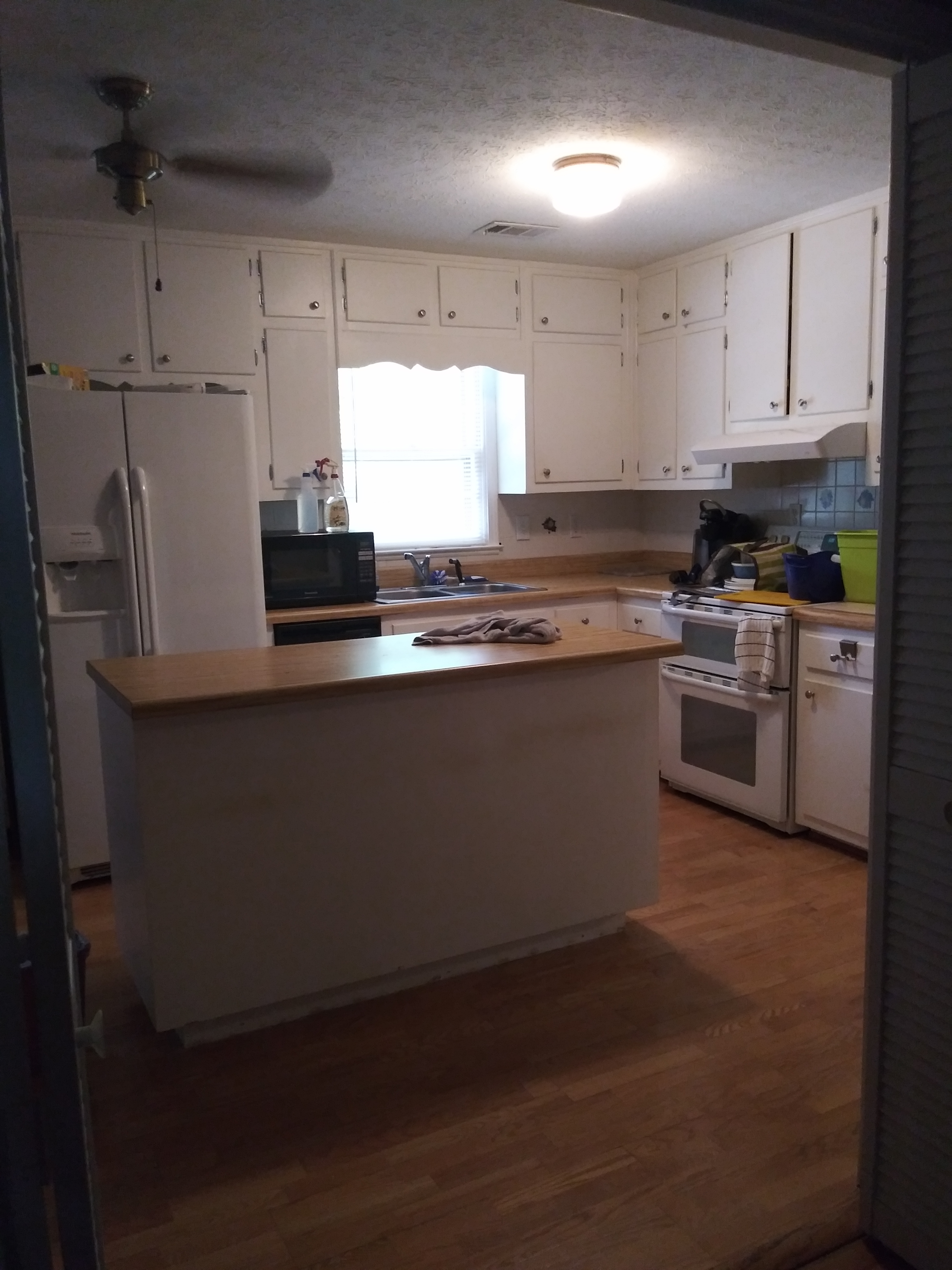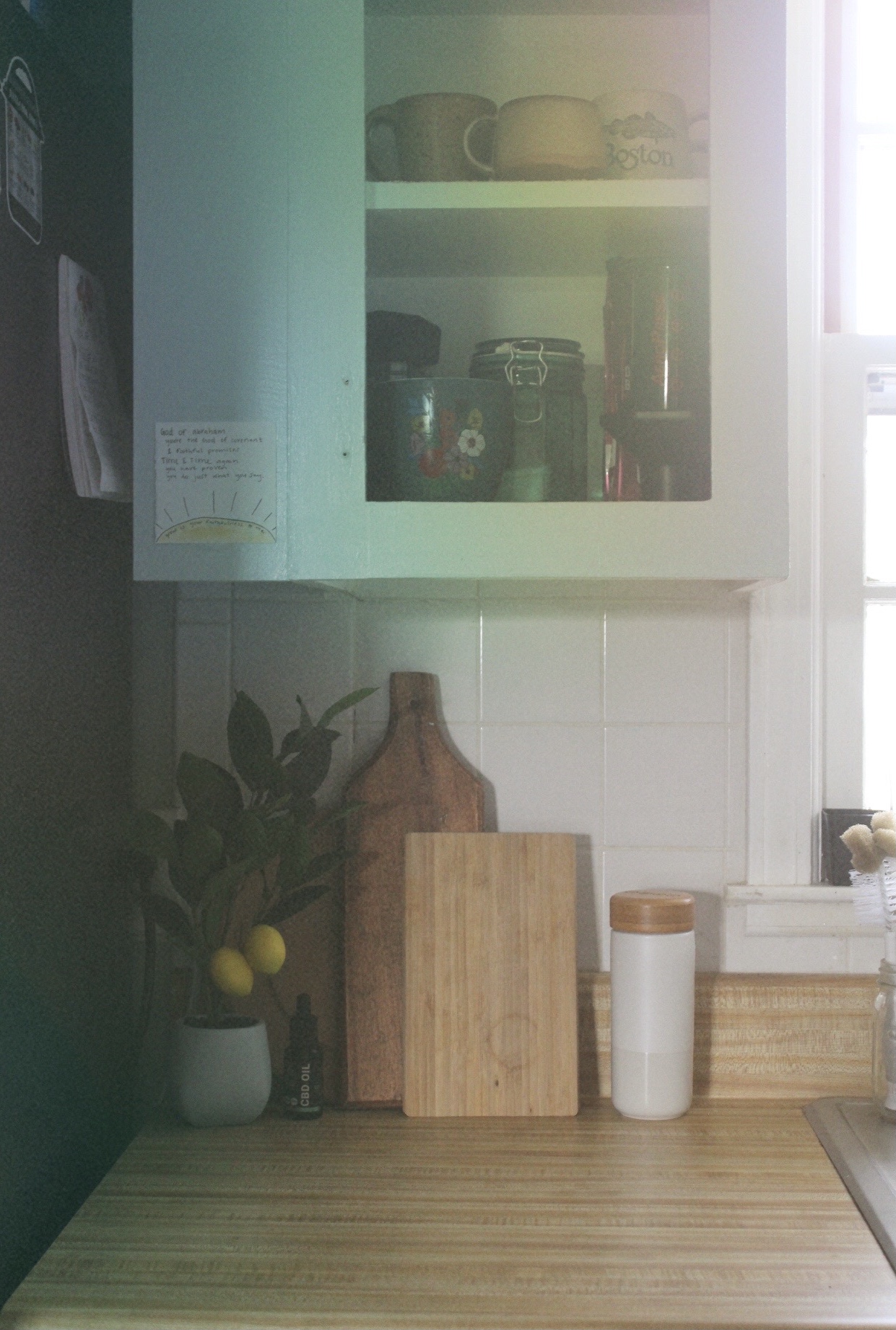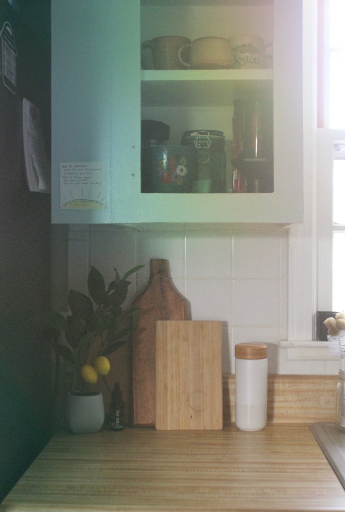 - Removed cabinet doors above sink to make the things we use everyday even more accessible, especially for the kids. It mimics open shelving, which I love, but at a much lower price point and