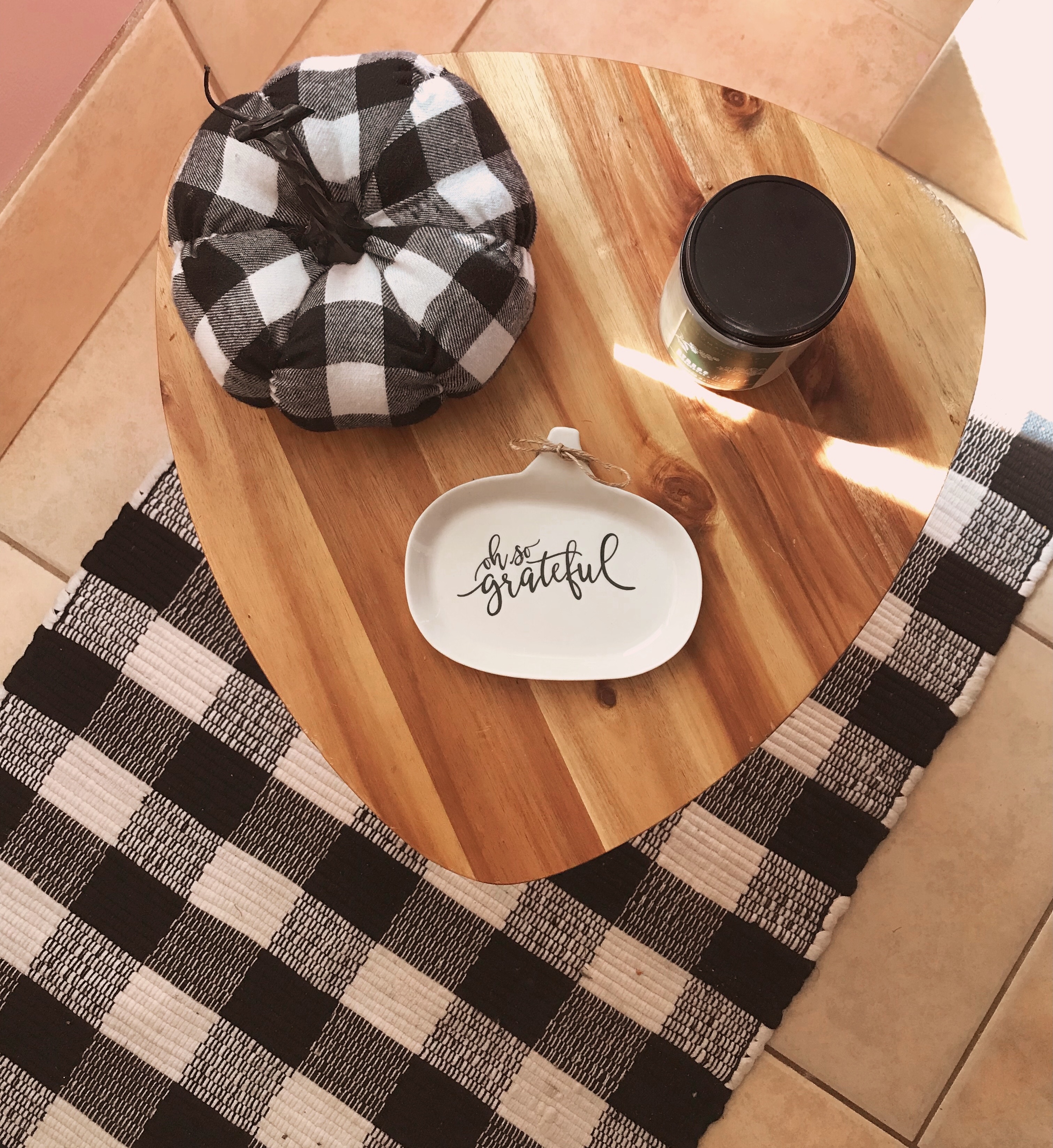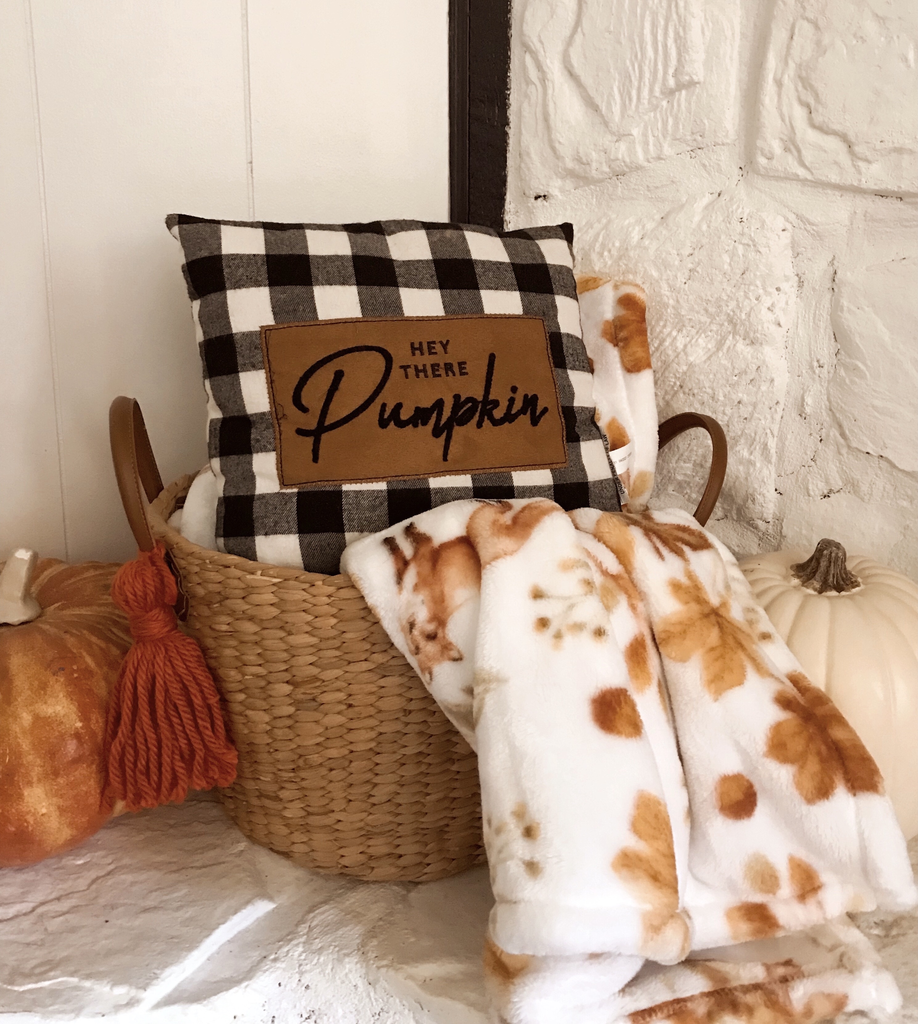 From pumpkins to pillows, buffalo plaid is having a moment in the spotlight this season, particularly the black & white combo. I love it because its incredibly versatile & doesn’t scream lumberjack like some other plaids do. It’s like plaid got a chic and classy upgrade. I also love how it can be transitioned into the winter months as well. Here’s a few ways we have incorporated this trend into our home for the season.