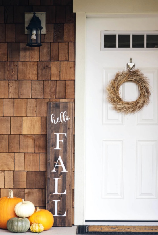 If you were to only decorate one place for fall, let it be your front porch. Don’t have a front porch or live in an apartment? You can still dress up your front door by adding a festive rug and seasonal wreath or garland around the door. These wooden signs for your front porch are also wildly trendy right now and I am not at all mad about it. They don’t take up much space so they work for almost any size front porch but still deliver a lot of impact to the space. So have some fun sprucing up your front porch for fall. These are some of my favorite fall porch decor items.