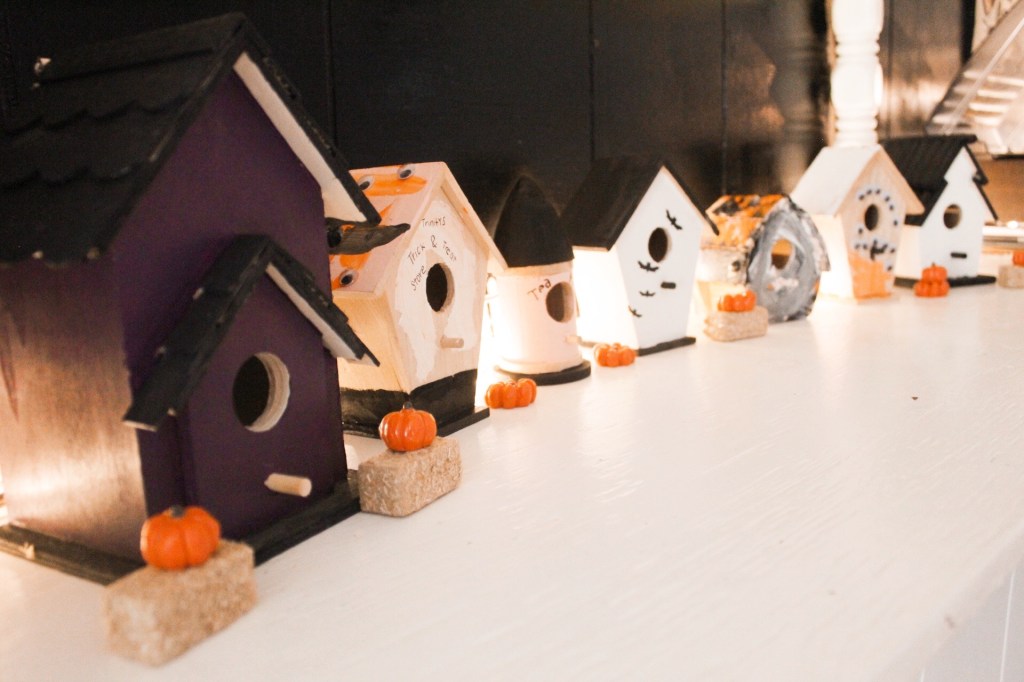 In the past, we also did this super simple yet delightful craft where we painted bird houses to create our own spooky Halloween village filled with shops like “Lunas tea house” and “Trinity’s Trick & Treat Shop”.